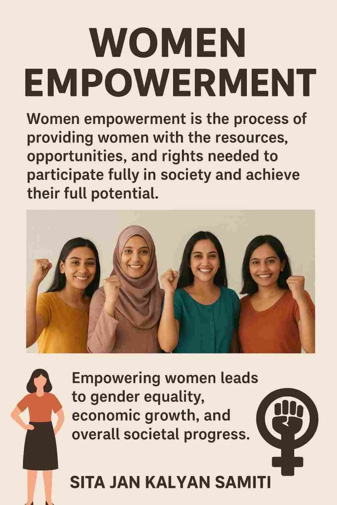Women empowerment is not just a social responsibility—it is a necessity for building a balanced and progressive society. Empowering women means giving them equal opportunities in education, employment, decision-making, and leadership. At Sita Jan Kalyan Samiti, we believe that women are the foundation of families, communities, and the nation, and their empowerment ensures a stronger and more inclusive future.